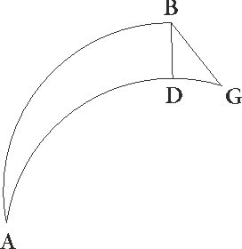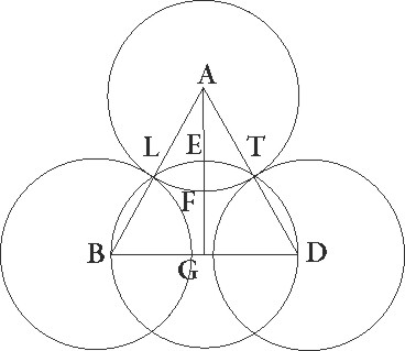 Hec cum ita se habeant, fiat obscuratio exempli gratia digitorum trium, et primum supponatur centrum Solis esse in A. Quando igitur Luna est in maxima sua distantia, tunc AB 31′ 20′′ sexagesimarum fit et quadratum suum 181′ 47′′, linea vero AG 23 30′′ earundem. Minor enim