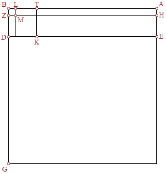 Dico, inquit, quod latus DZ est latus decagoni, BZ vero pentagoni. Quoniam enim DG in duas aequales partes secta est super puncto E, in directum autem ei adiacet quaedam linea DZ, rectangulum quod continetur sub tota cum apposita et apposita, una cum quadrato quod fit ex dimidia, aequum est quadrato quod fit ex linea composita ex dimidia et apposita. Hoc est, rectangulum quod fit ex GZ ZD, cum quadrato quod fit ex DE, aequum est quadrato quod fit ex ZE (hoc est, quadrato quod fit ex EB), quod quidem aequum est quadratis ex BD DE. Quare, rectangulum quod fit ex GZ ZD, cum quadrato quod fit ex DE, aequum est quadratis quae fiunt ex BD, DE; auferatur commune quod fit ex DE. Reliquum igitur rectangulum sub GZ, ZD, aequale est quadrato quod fit a linea DB, hoc est quadrato quod fit a linea DG. Tres igitur rectae sunt proportionales: sicut ZG ad GD, sic GD ad ZD. Et quoniam GZ divisa est in partes inaequales super puncto D, et sicut tota GZ ad maiorem sectionem GD, sic illud ipsum maius segmentum (ut maior sectio GD) ad minus DZ, igitur GZ extrema et media ratione secta est super D. Et maius segmentum GD est aequale lateri hexagoni;