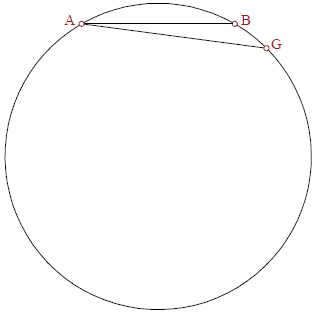 Et ponit circulum circulum] corr. ex circumferentiam M ABGD, et in eo ducit duas lineas inaequales, minorem quidem AB, maiorem vero BG, et bifariam secat angulum ABG recta BD. Et connexis lineis AEG, AD, et DG, ulterius dicit: Quoniam angulus ABG bifariam sectus est a linea BD, aequalis quidem est linea AD lineae DG (quia etiam circumferentia AD circumferentiae DG aequalis est, eo quod anguli ad B sunt aequales), maior vero est linea GE quam EA (quia rursum AD aequalis est DG, et linea DE communis est, et angulus BDG maior angulo BDA, quia etiam BG circumferentia maior est circumferentia BA).