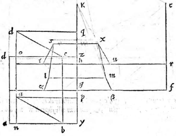 Planum propositum, in quo figuram describi oportet (quod vulgo parietem nos non inepte tabulam dicemus), sit perpendiculariter erectum super horizontem. Figura autem vel erit superficies vel corpus; si superficies, vel rectilinea vel curvilinea, vel ex his mixta, et vel horizonti aequidistans vel super horizontem elevata; praeterea vel erit ultra propositum planum, vel citra, vel partim ultra, partim citra. Sit primum ea superficies ultra propositum planum, hoc est ultra tabulam constituta,