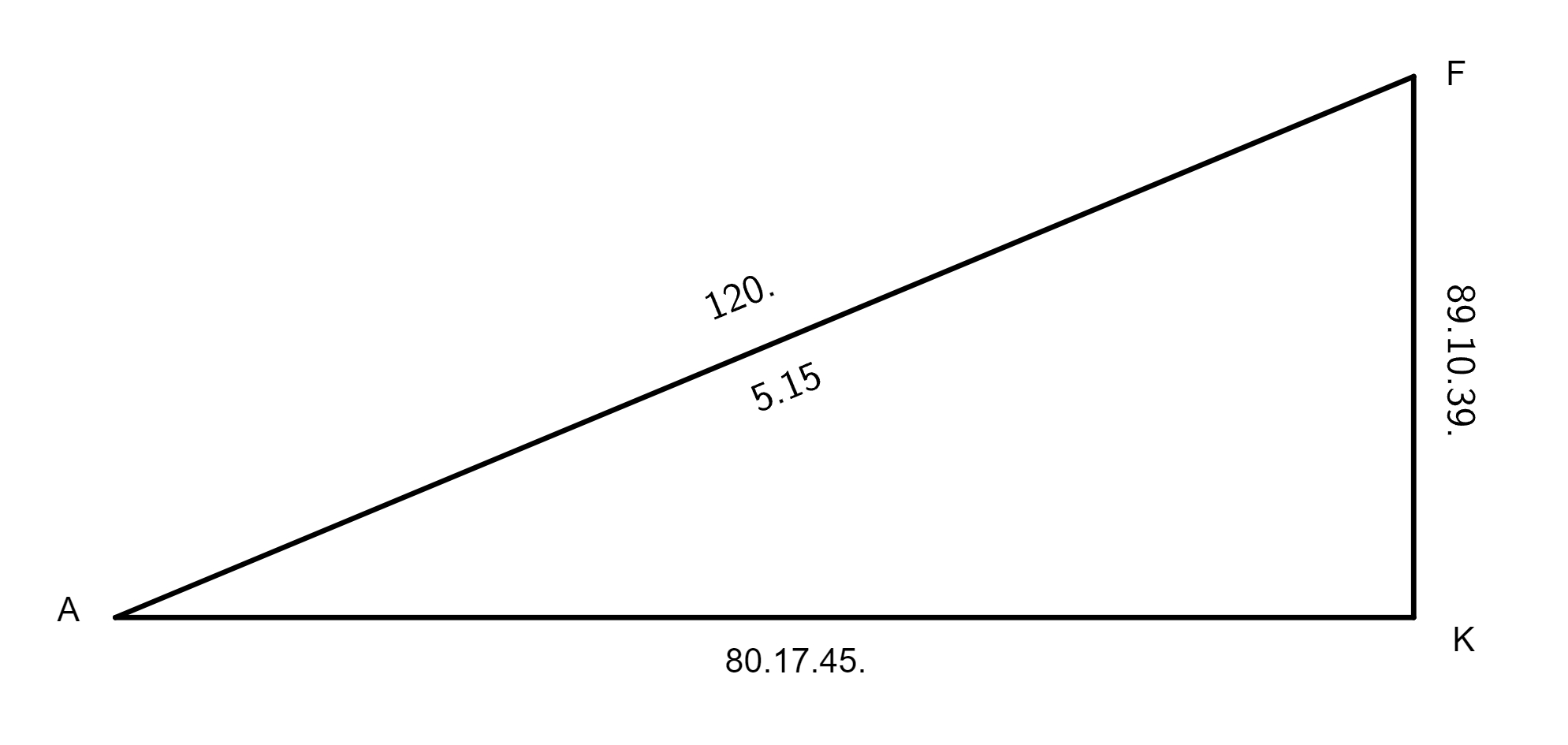 uno latere, et invenimus latus KF, 3° 54ʹ 5ʹʹ, et latus KA, 3° 30ʹ 46ʹʹ, quo facto, adiecimus productum lateris KA