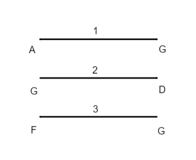 et multiplicato tertio in quemlibet secundorum, ac productis divisis per primum, prodibunt pro latere TG 1° 0ʹ 8ʹʹ et pro latere ET 0° 53ʹ 21ʹʹ. Ad habendum lineam AG primae figurae sic perreximus, scilicet subtraximus lineam ET, hoc est 0° 53ʹ 21ʹʹ, a linea AE, quae est inventa 17 gradus 55 minuta 32 secundae, et quod relictum est fuerunt 17 gradus, 2 minuta 11 secundae, linea scilicet TA, quo facto multiplicata est nobis linea AT in se, et similiter linea TG, et producta sunt addita invicem per penultima primi Euclidis, et ex producto quaesita est radix quadrata, quam invenimus esse 17° 3ʹ 57ʹʹ, pro longitudine lineae AG. Ex his suppositis non difficile est ad elicendum quot graduum sint lineae GE, DE eorundem nimirum, quorum AG est 89 graduum 46 minutorum 14ʹʹ, et ut hoc facilius habet, ordinentur numeri in regulam DE DE] read de tribus: