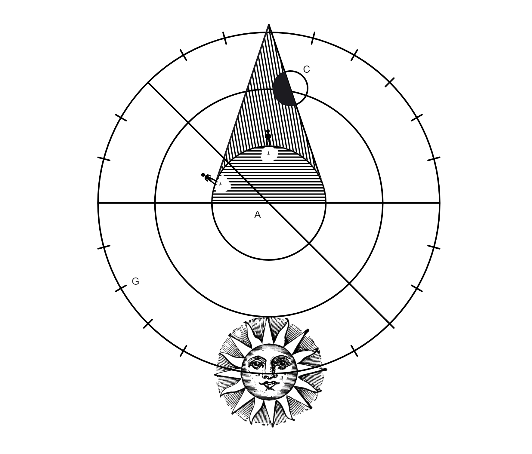In primis duobus libris, optime lector, breviusculis annotationibus, quomodo tabulae chordarum, tabulae obliquationis Solis et rectarum ascensionum, ac tabulae obliquarum ascensionum, nec non tabulae angulorum tum orientalium tum occidentalium sint conficiendae et hoc ad omnia climata, licet Ptolemaeus haec omnia copiose tradiderit, tamen cum regula sex quantitatum, aut doctrina triangularum sphaeralium una cum subtractione proportionum, vel secundum synthesim vel secundum dieresim sit paulo difficilior quam ut possit a quovis, etiam in libris sphaericis bene versato, intelligi, operae precium nos facturos arbitrati sumus, si rem per exempla illustriorem redderemus. Non dubitamus quin candidatus huius pulcherrimae artis facile assequetur rationem componendi tabulas obliquarum ascensionum vel ad singulas polorum elevationes, quid tabulas obliquarum ascensionum? Imo etiam tabulas ortivarum et occiduarum latitudinum, quae maximae requiruntur ad cognitionem inclinationis eclypsium lunarium, et ad multa alia de quibus non est locus dicendi, et tabulas omnis generis angulorum ad singula climata, quae non solum deserviunt negotio deliquiorum solarium, imo multis aliis speculationibus iucundissimis, de quibus suo loco abunde satis dicemus. In tertio libro adiecimus quoque annotationes et exempla, quae ita tractavimus quod speramus, studiosum suo marte, si habuerit theoricarum solidam cognitionem, intellecturum quo modo tabulae angulorum inaequalitatis sint componendae, quae, ut videre est, fluunt ex cognitione triangulorum planorum, et quo modo ex dato motu aequali Solis inaequalis eliciatur, et contra, dato motu inaequali, aut angulo inaequalitatis motus aequalis investigandus. Maluimus rem per exempla illustrare quam prolixis demonstrationibus geometricis, maxime cum Ptolemaeus ipsemet adduxerit demonstrationes, ubi res postulaverat. Qui in hoc tertio libro et in reliquis consequentibus hoc ordine processit, scilicet primum observavit, suasque observationes contulit cum priscorum mathematicorum observationibus, quo facto, composuit mediorum motuum planetarum tabulas, deinde demonstravit quibus circulorum suppositionibus planetarum motus salvari possunt. His habitis, aggressus est inventionem excentricitatis, sine qua fieri non potest ut sciantur anguli inaequalitatis, inventa scilicet excentricitate contulit se ad investigationem angolorum inaequalitatis et eorundem tabularum compositionem. Sed hoc sciendum esse duximus, nempe quod in Sole tantum sufficiat ad angulorum dictorum inventionem excentricitatis cognitio, in reliquis vero opus habetur etiam quantitate semidiametri epicycli. Quibus autem modis excentricitatem Solis, et punctum longitudinis longioris invenerit hoc satis explicatum est in annotationibus tertii libri. In Luna et in tribus superioribus, non pendet eiusmodi excentricitatis et quantitatis semidiametri epicycli inventio a tempore ingressus Solis in primum punctum aequinoctii vernalis usque ad solstitium aestivale, et a tempore solstitii aestivalis usque ad aequinoctium autumnale, quemadmodum in Sole, imo ab aliis rebus, hoc est ab eclypsibus lunaribus et oppositionibus. Nam cum Ptolemaeus volebat venari semidiametrum epicycli Lunae, coepit tres eclypses Lunae, per quas operatio certior est, quam per instrumenta, vel respectu stellarum fixarum aut eclypses solares, easque examinavit ut mox videbitur, et quod deprehendit in Luna per eclypses, hoc in tribus superioribus, cum nunquam depriventur lumine suo per interpositionem terrae, coactus est per tres oppositiones deprehendere. In Venere vero et Mercurio, qui non tantum recedunt a Sole ut fierent ei oppositi, excentricitatis et loca maximarum longitudinum, ac quantitatem semidiametrorum epicyclorum etiam alia via investigavit, nempe per observationes maximarum eorum recessionum a Sole tum matutinarum, tum vespertinarum. Verum cum inventio semidiametri epicycli Lunae non parum lucis addat inventioni excentricitatis trium superiorum, nam utuntur fere iisdem propositionibus Euclidis, ut videbitur, visum est calculo paulo illustrius reddere examen investigationis semidiametri epicycli Lunae per tres antiquissimas eclypses lunares. Fiat igitur figurae descriptio in hunc, qui sequitur modum, in qua D sit centrum zodiaci